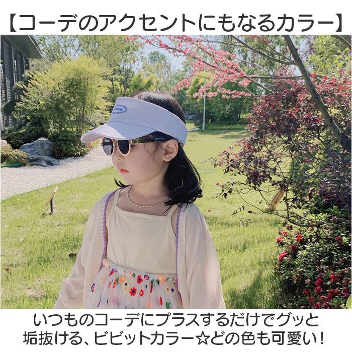 キッズ サンバイザー 通販 帽子 ぼうし つば長 つば広 軽量 軽い 日除け 日よけ 女の子 男の子 熱中症対策 無地 シンプル 子供 こども 子ども 外遊び 小物 スポーツ アウトドア 海 プール かわいい 可愛い お出掛け おでかけ お出かけ