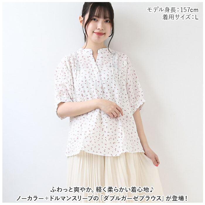 ・ふわっと爽やか。軽く柔らかい着心地♪ノーカラー+ドルマンスリーブがトレンドの「ダブルガーゼブラウス」が登場!