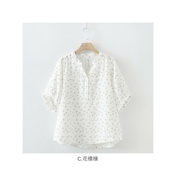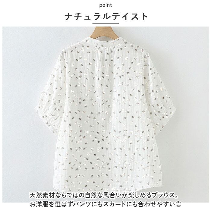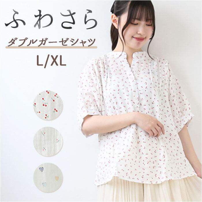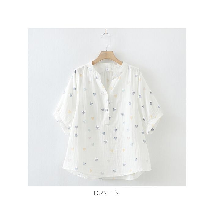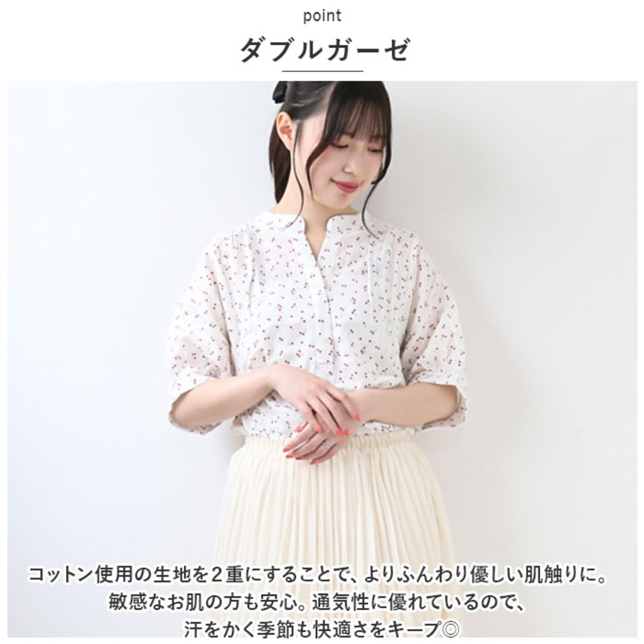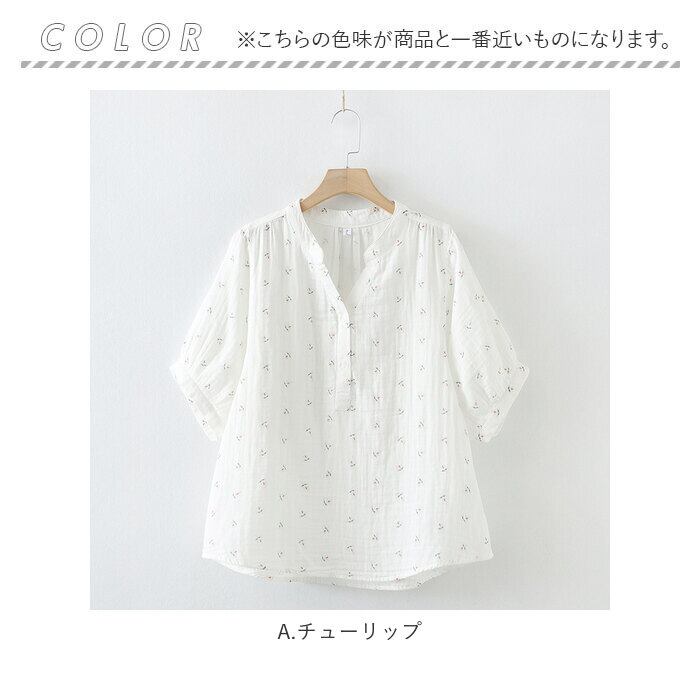 ダブルガーゼ ブラウス レディース 通販 シャツ コットンシャツ ガーゼシャツ 半袖 ガーゼ ダブル コットン ゆったり ワイド袖 カジュアル 無地 体型カバー 春 夏 秋
