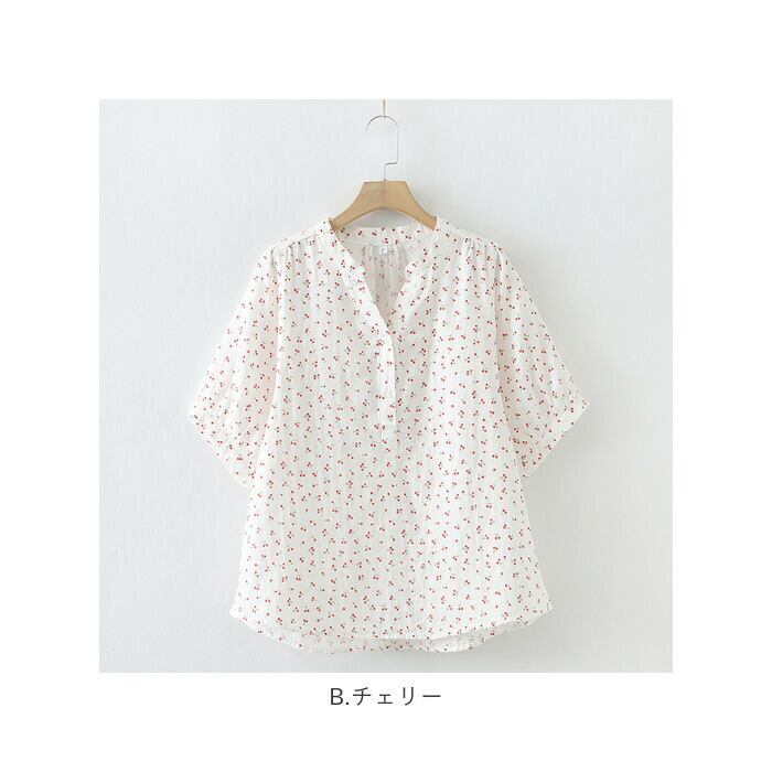 ・カジュアルながらも女性らしさを楽しめる優しい柄のデザイン。暑い季節も爽やかに着こなせて、涼し気な印象。