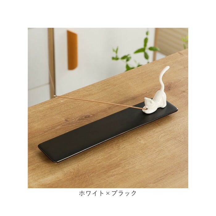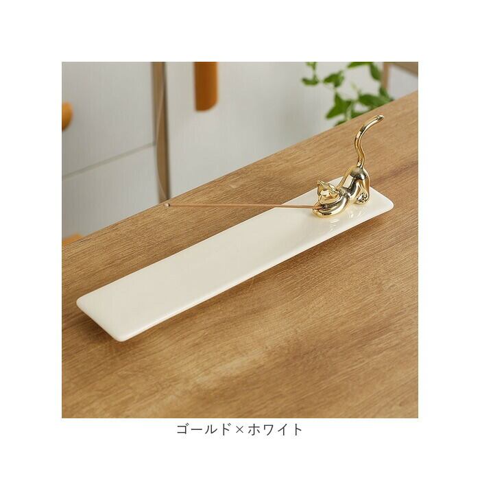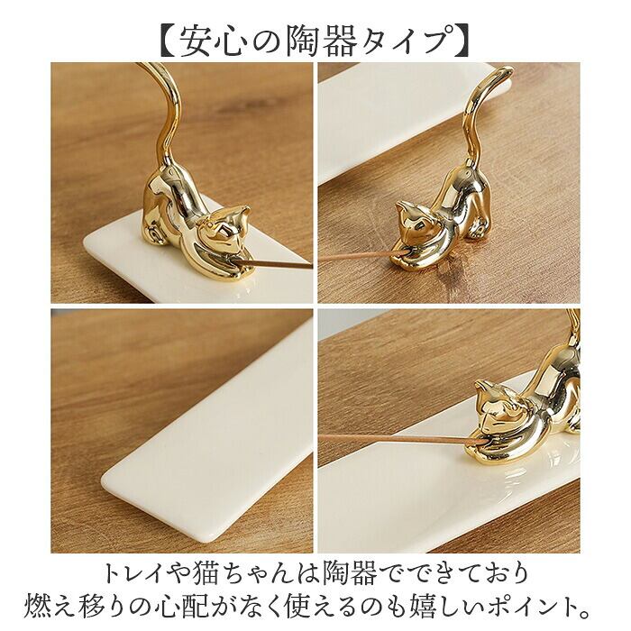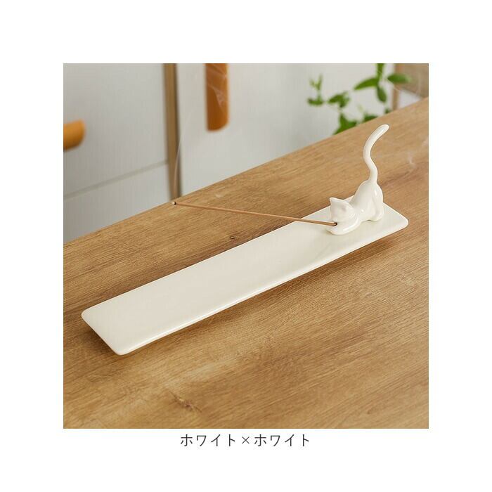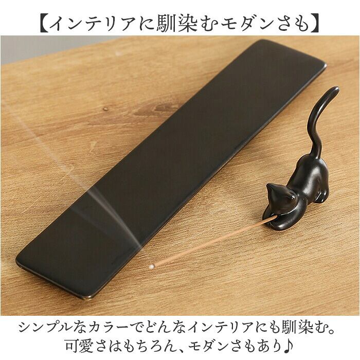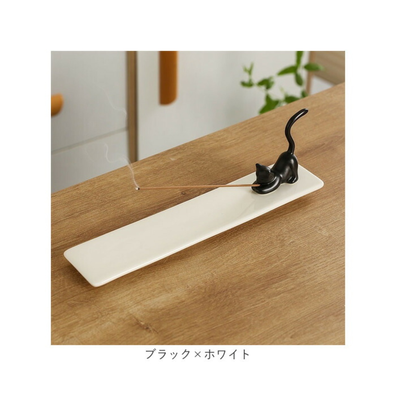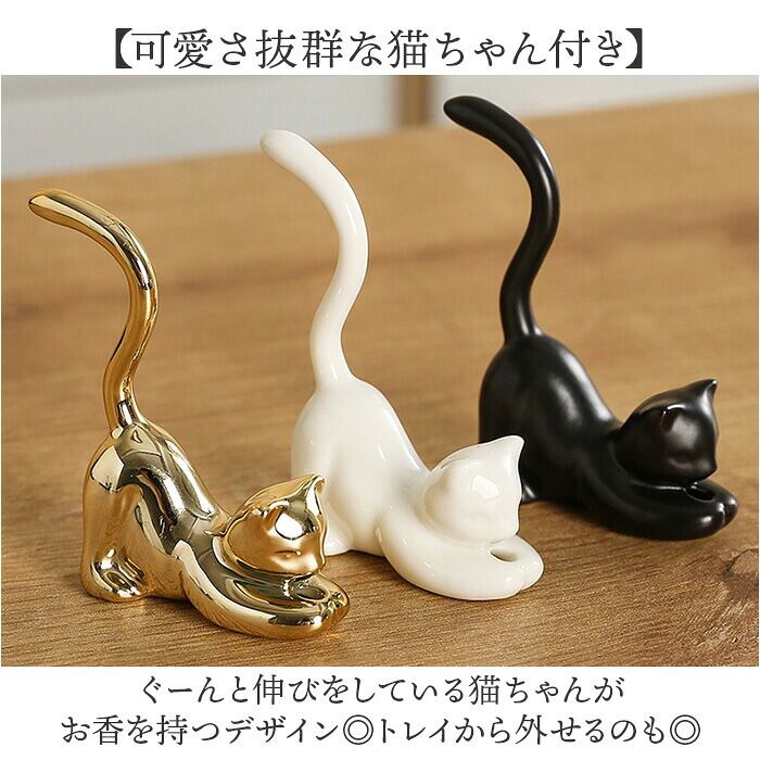 ・ぐーんと伸びをしている猫ちゃんがお香を持つデザイン◎トレイから外せるのも◎