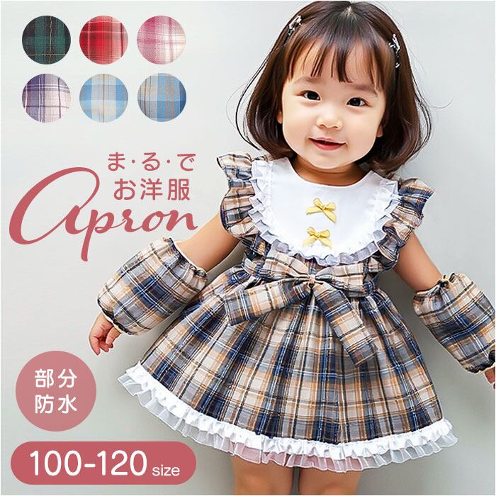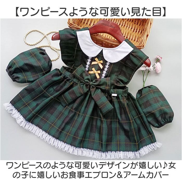 ・ワンピースのような可愛いデザインが嬉しい♪女の子に嬉しいお食事エプロン&アームカバー