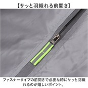 ・ファスナータイプの前開きで必要な時にサッと羽織れるのが嬉しいポイント。