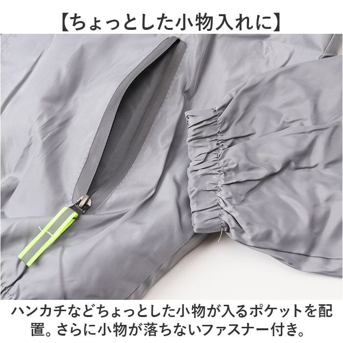 ・ハンカチなどちょっとした小物が入るポケットを配置。さらに小物が落ちないファスナー付き。