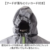 ・襟元のコードを絞れば、顔周りのサイズにフィット♪風が吹いてもズレ落ちにくい。