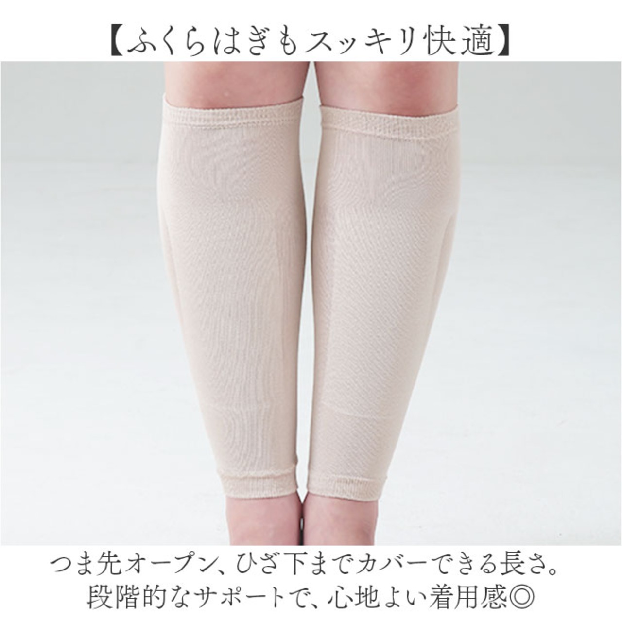 ・つま先オープン、ひざ下までカバーできる長さ。段階的なサポートで、心地よい着用感◎