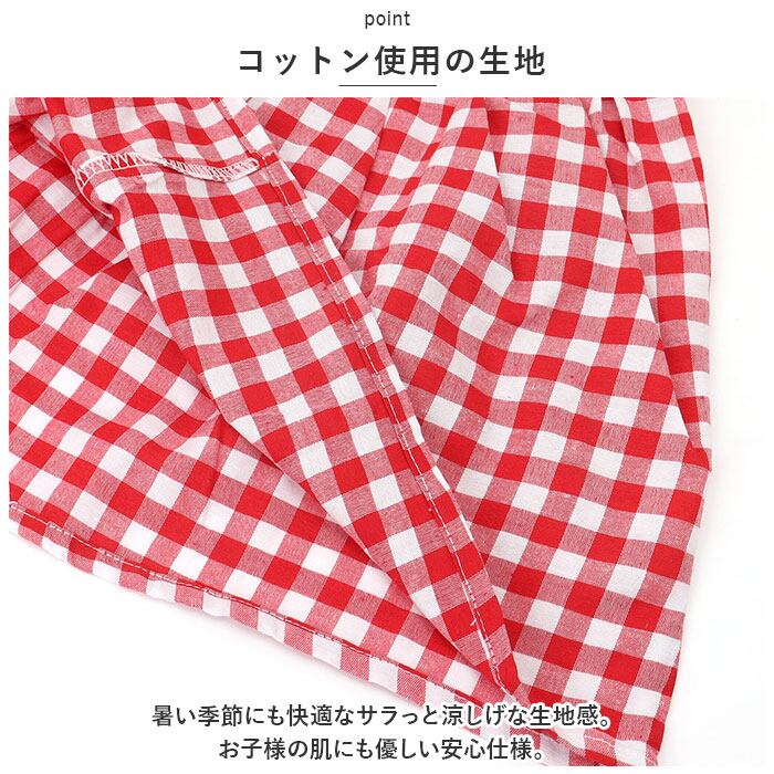 ・暑い季節にも快適なサラっと涼しげな生地感。お子様の肌にも優しい安心仕様。