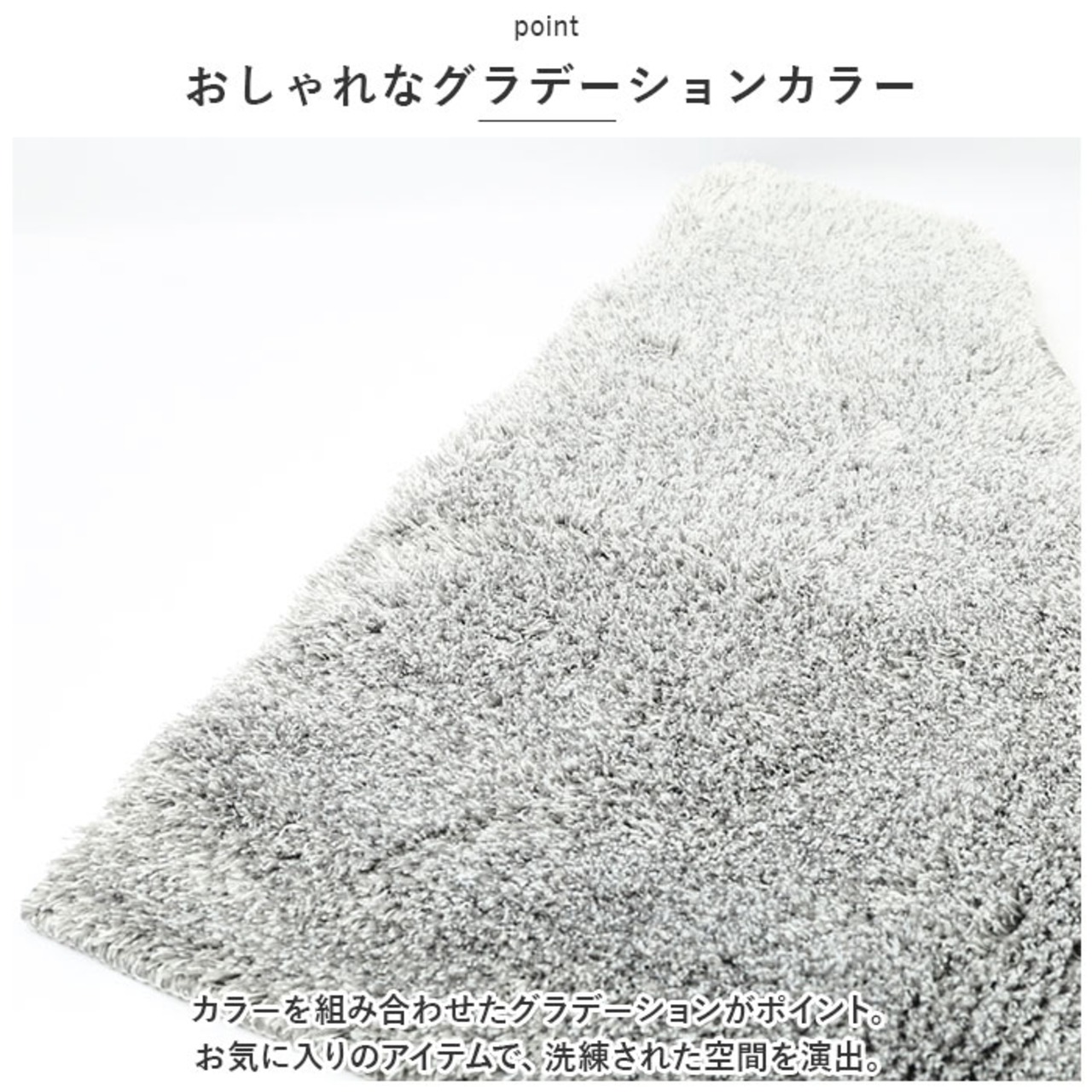 ・毛足が長めのパイル糸を使い、ソフトな質感に仕上げた3点セット。触り心地も、素足での踏み心地もバツグン。