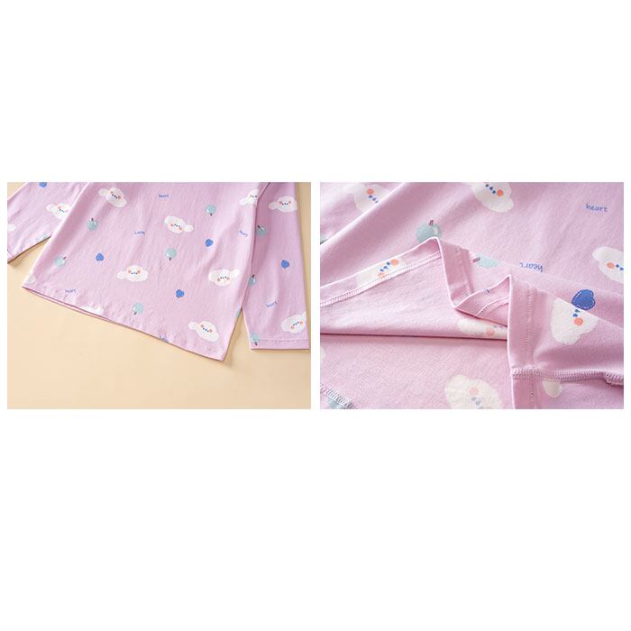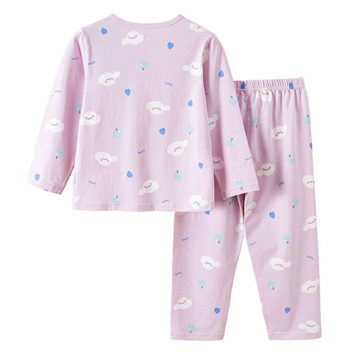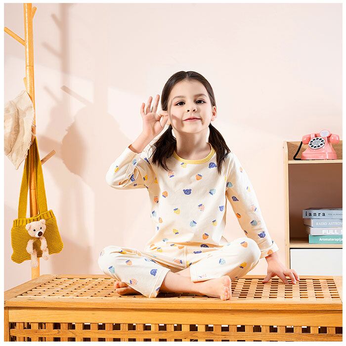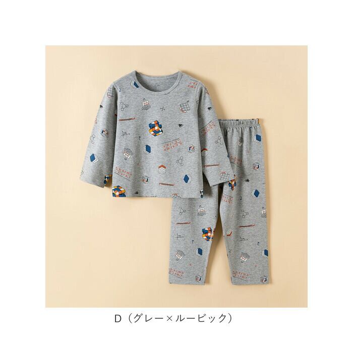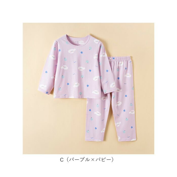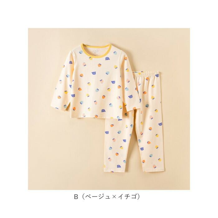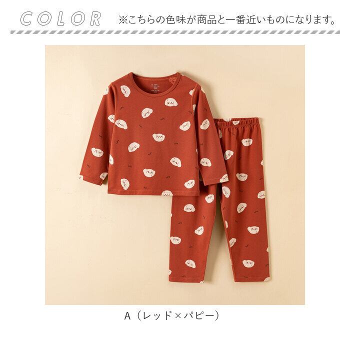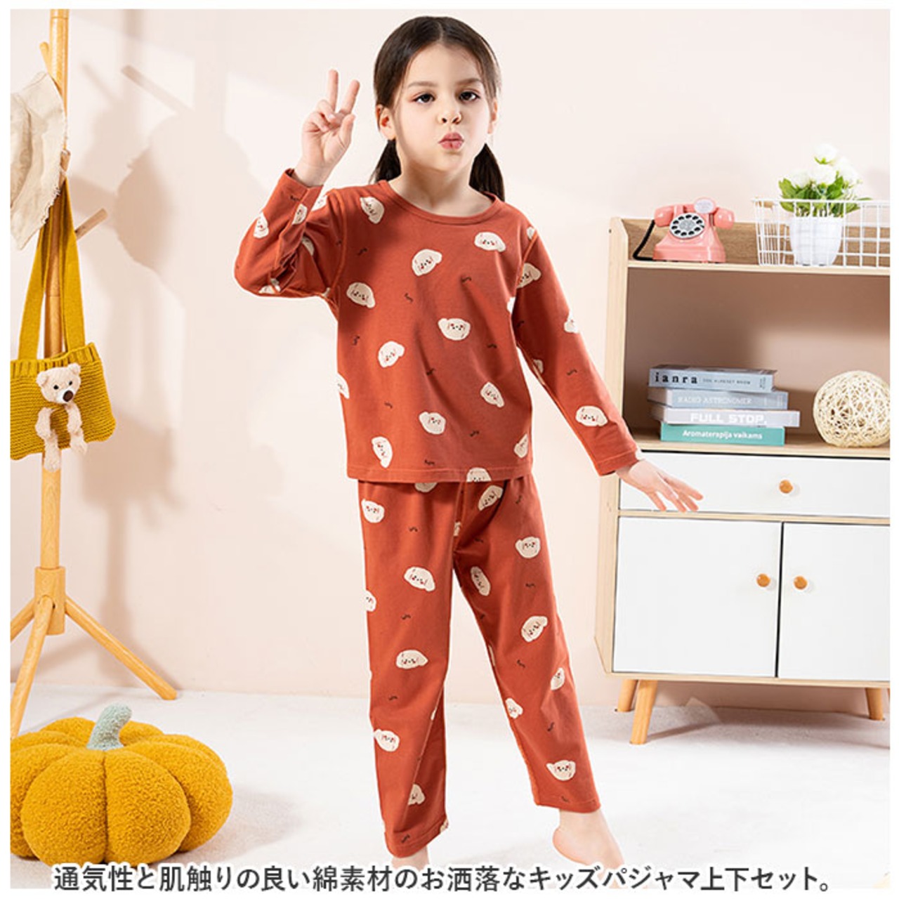 ・通気性と肌触りの良い綿素材のお洒落なキッズパジャマ上下セット。