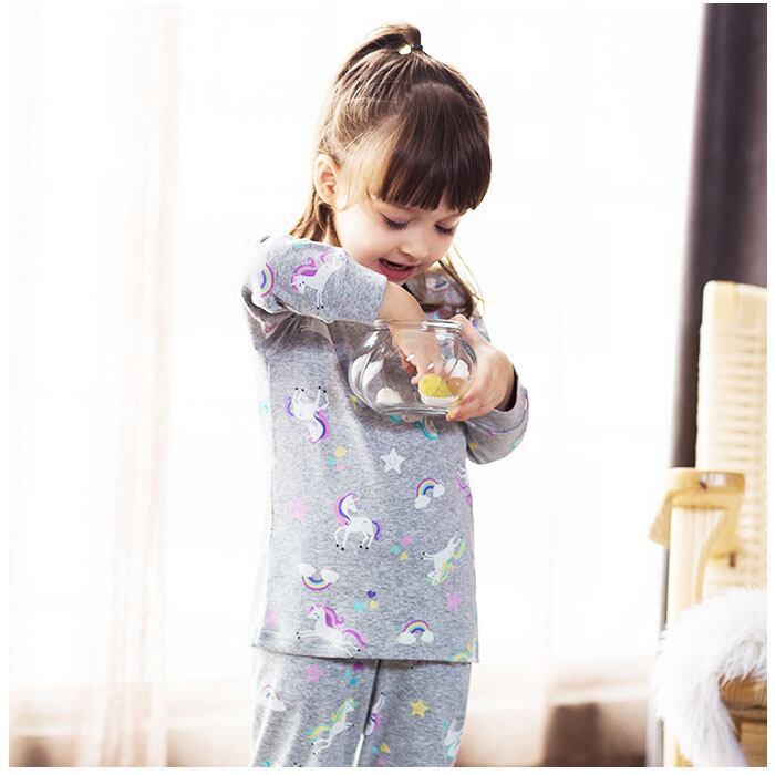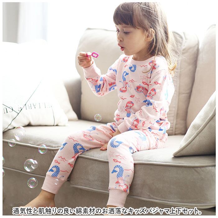 ・通気性と肌触りの良い綿素材のお洒落なキッズパジャマ上下セット。