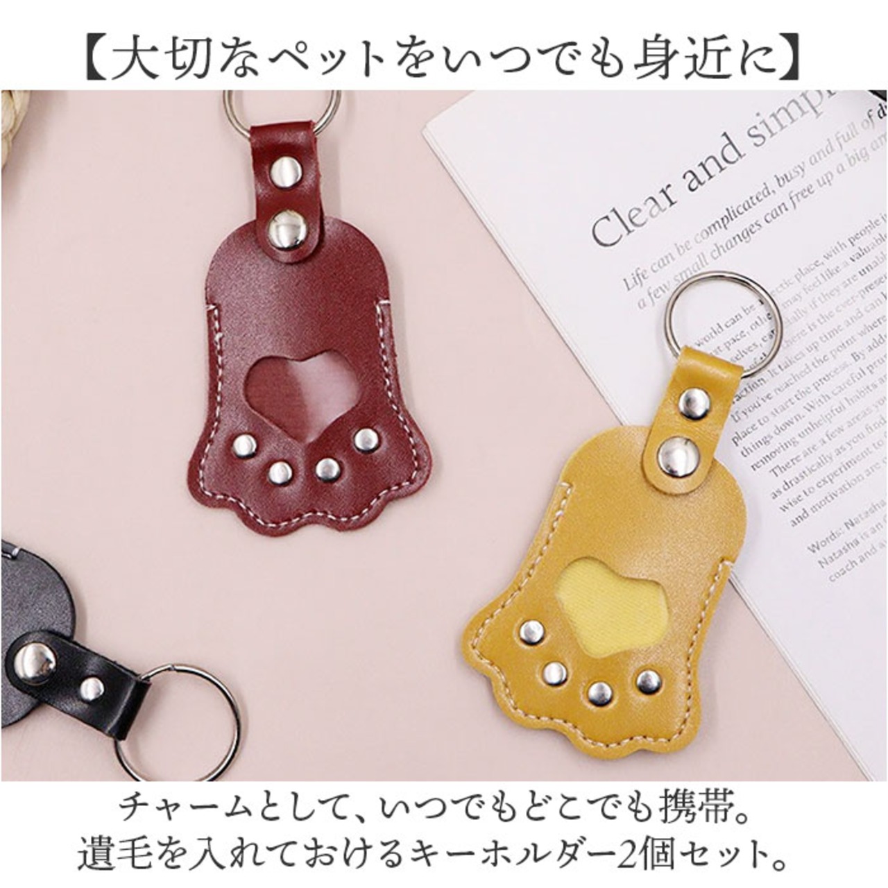 ・チャームとして、いつでもどこでも携帯。遺毛を入れておけるキーホルダー2個セット。