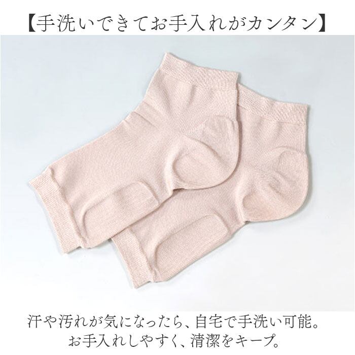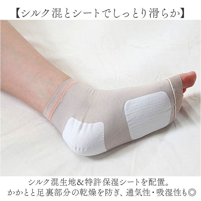 ・シルク混生地&特許保湿シートを配置。かかとと足裏部分の乾燥を防ぎ、通気性・吸湿性も◎