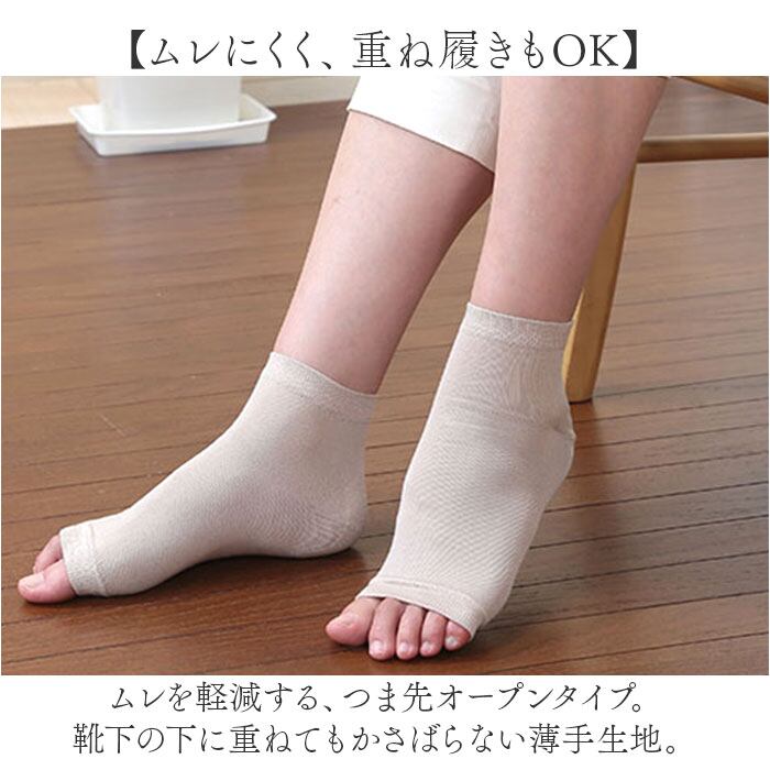 ・ムレを軽減する、つま先オープンタイプ。靴下の下に重ねてもかさばらない薄手生地。