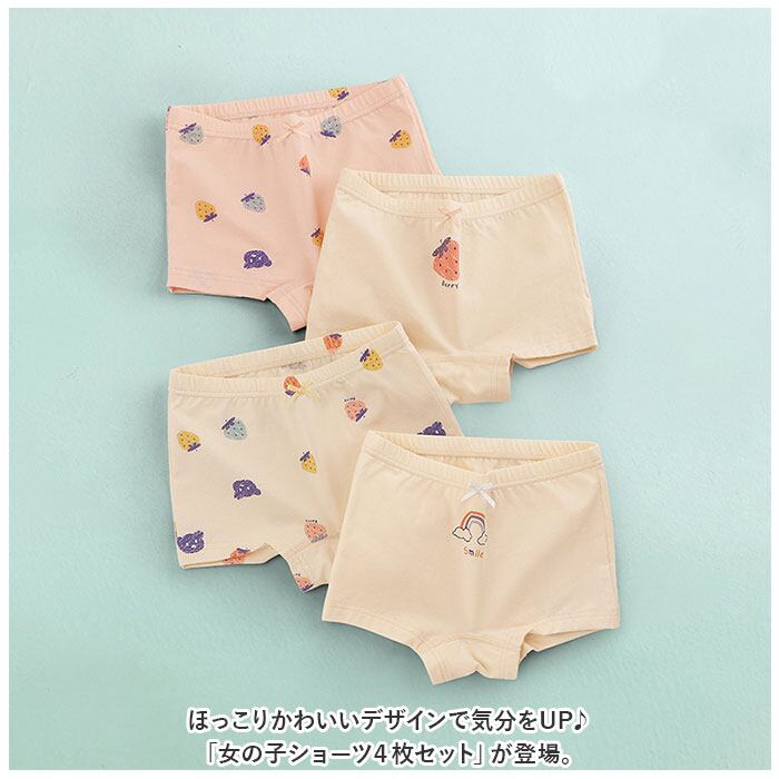 ・ほっこりかわいいデザインで気分をUP♪「女の子ショーツ4枚セット」が登場。