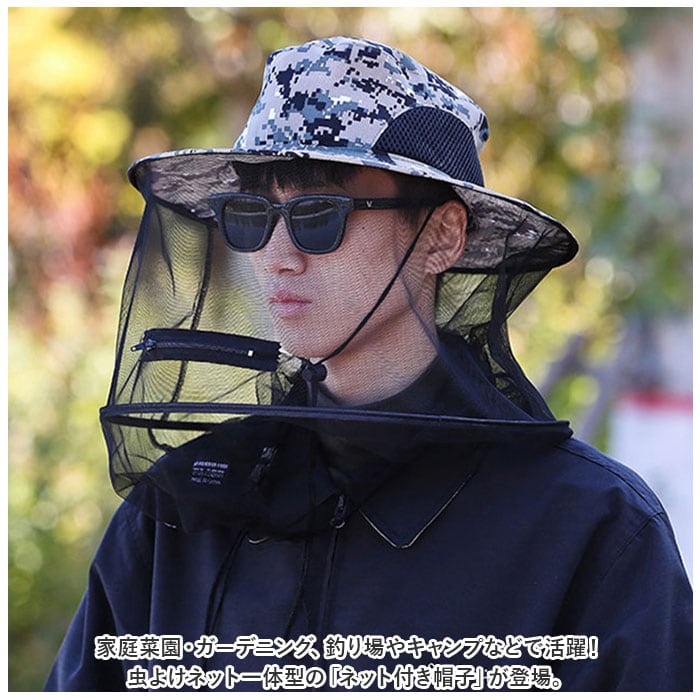 ・家庭菜園・ガーデニング、釣り場やキャンプなどで活躍!虫よけネット一体型の「ネット付き帽子」が登場。