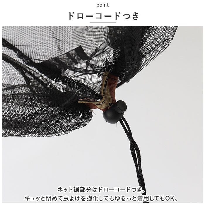 ・ネット裾部分はドローコードつき。キュッと閉めて虫よけを強化してもゆるっと着用してもOK。