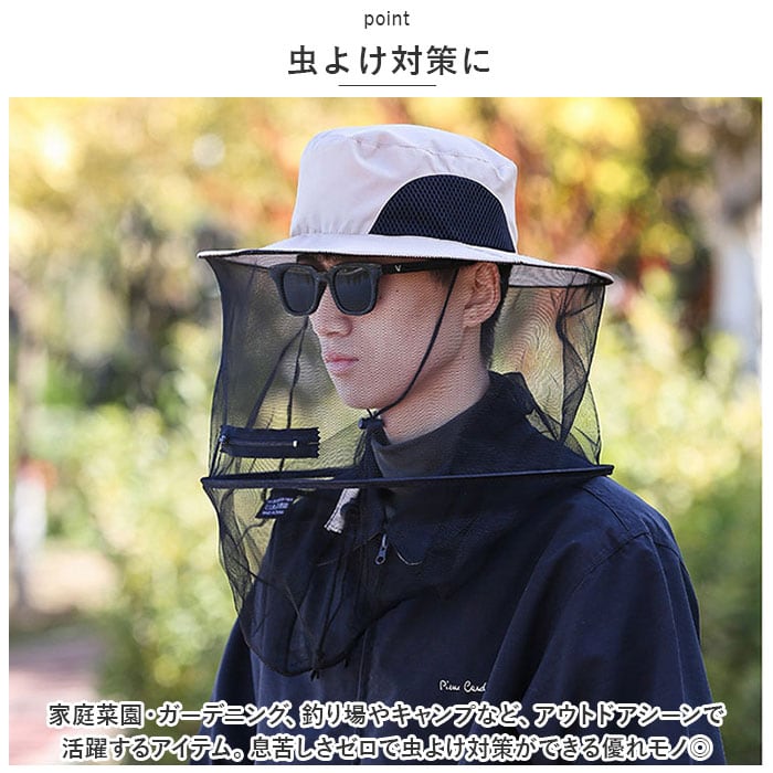 ・家庭菜園・ガーデニング、釣り場やキャンプなど、アウトドアシーンで活躍するアイテム。息苦しさゼロで虫よけ対策ができる優れモノ◎