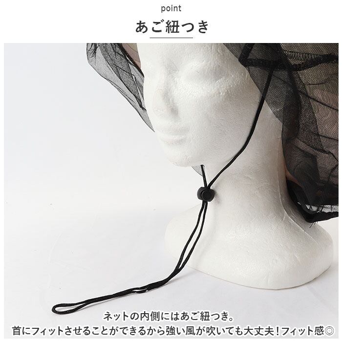 ・ネットの内側にはあご紐つき。首にフィットさせることができるから強い風が吹いても大丈夫!フィット感◎