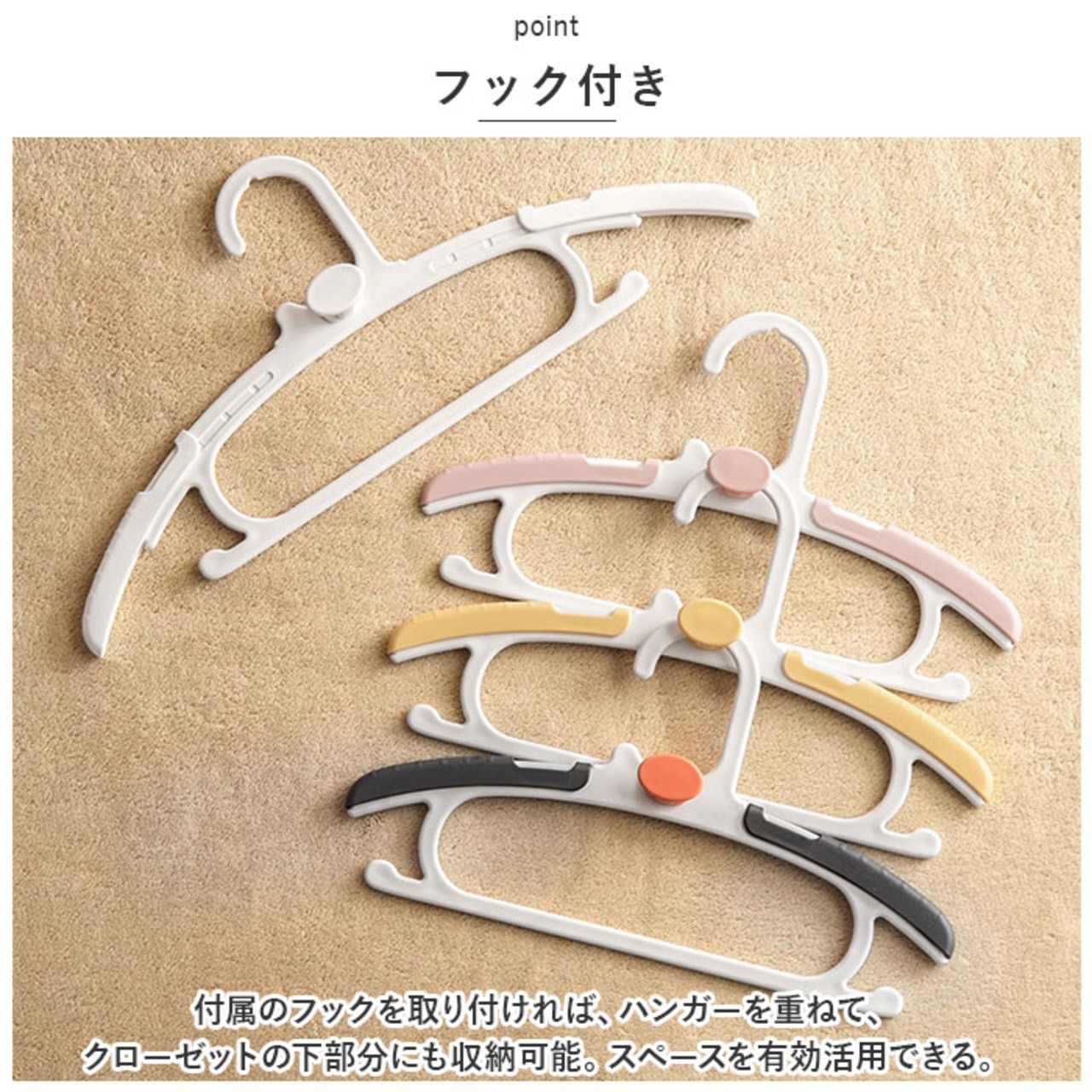 ・伸縮タイプで赤ちゃんから大人まで使える!フック取り付けで重ねて収納もOK☆「伸縮タイプ子供用ハンガー 10本セット」が登場。