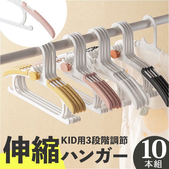 子供用ハンガー 通販 ハンガー 伸縮タイプ 伸縮 10本セット ベビーハンガー キッズハンガー 積み重ねる フック付き 滑らない 跡がつかない 省スペース 型崩れ防止 伸びる 子供服 収納 整理 おしゃれ かわいい