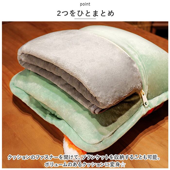 ・クッションのファスナーを開けて、ブランケットを収納することも可能。ボリュームのあるクッションに変身☆