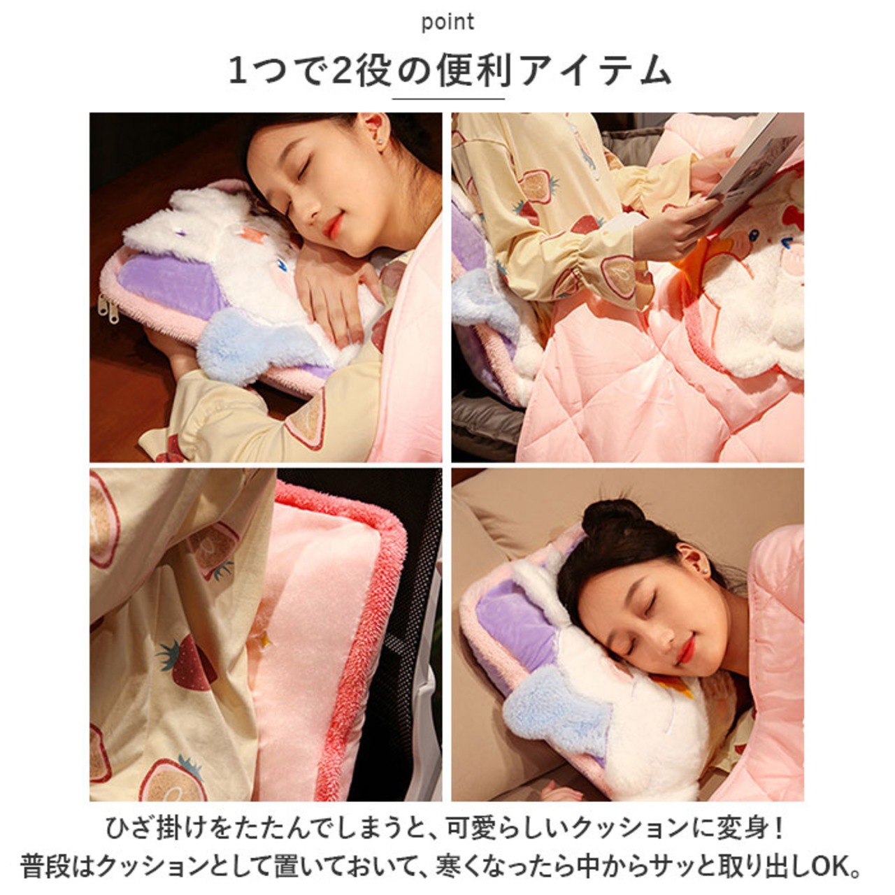 ・お気に入りのアイテムでリラックスタイムを過ごそう!キュートでポップなデザインの、クッションにもなるひざ掛けが新登場。