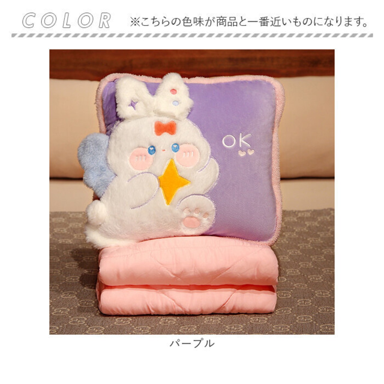 ・クッションとして使う際は、立体感のあるうさぎモチーフが目を惹く!存在感抜群の仕上がりで、子供部屋にもおすすめ。