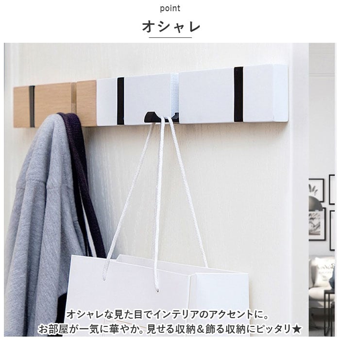 ・フックにハンガーを掛けて洋服やコート掛けに。または鍵やバッグなどを直接掛けてもOK!玄関やお部屋をスッキリ見せてくれ、整理整頓の助けをしつつ、機能美を追求。