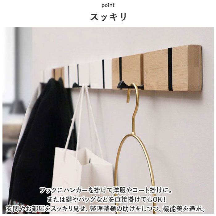 ・木製ベースに黒のフックがモダンな印象。スタイリッシュで飽きのこないデザインでどんなインテリアとも相性抜群。