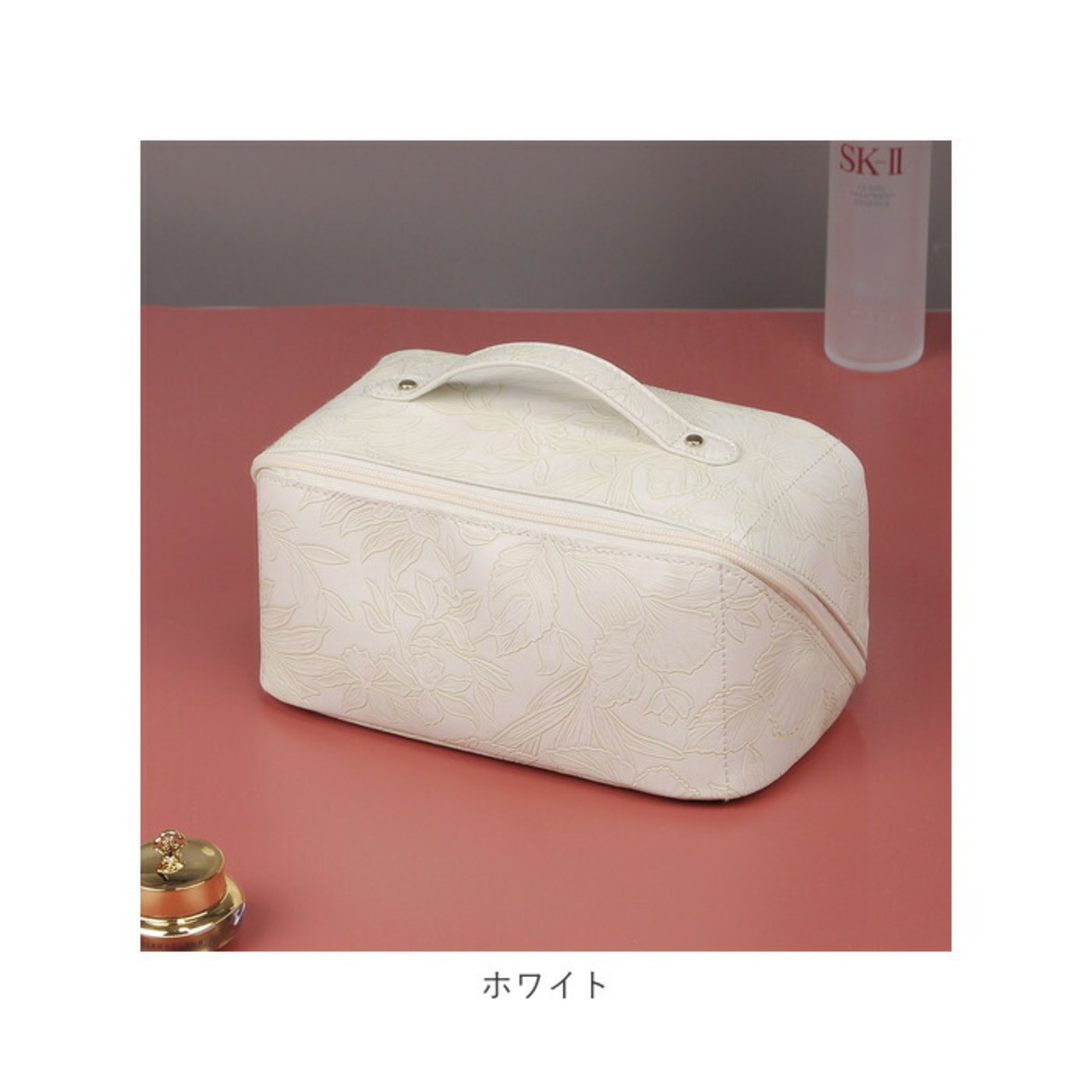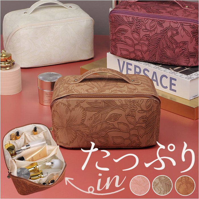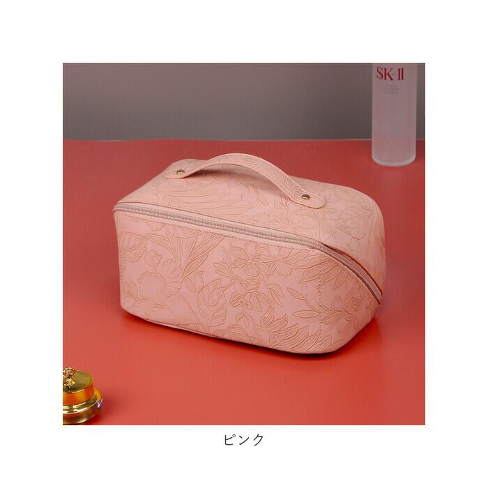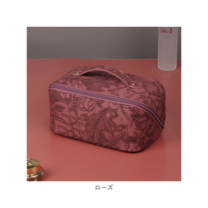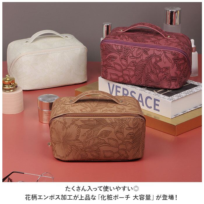 ・たくさん入って使いやすい◎花柄エンボス加工が上品な「化粧ポーチ 大容量」が登場!