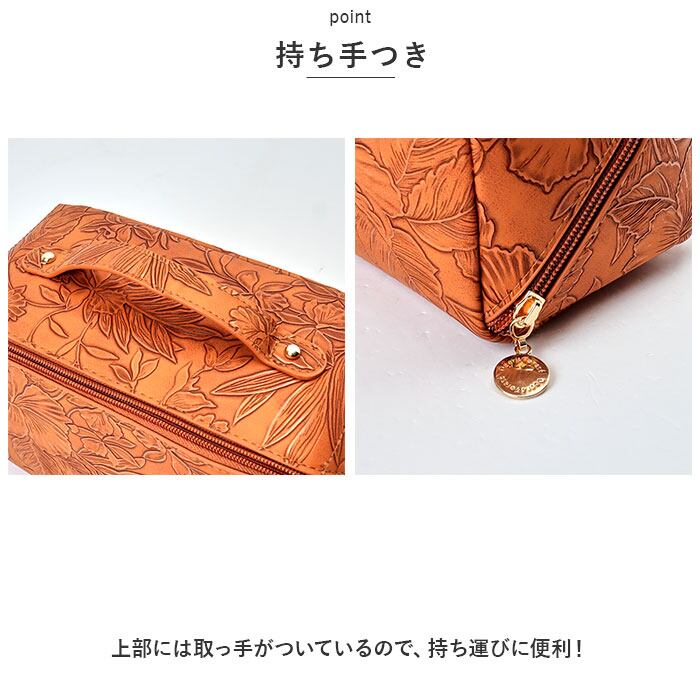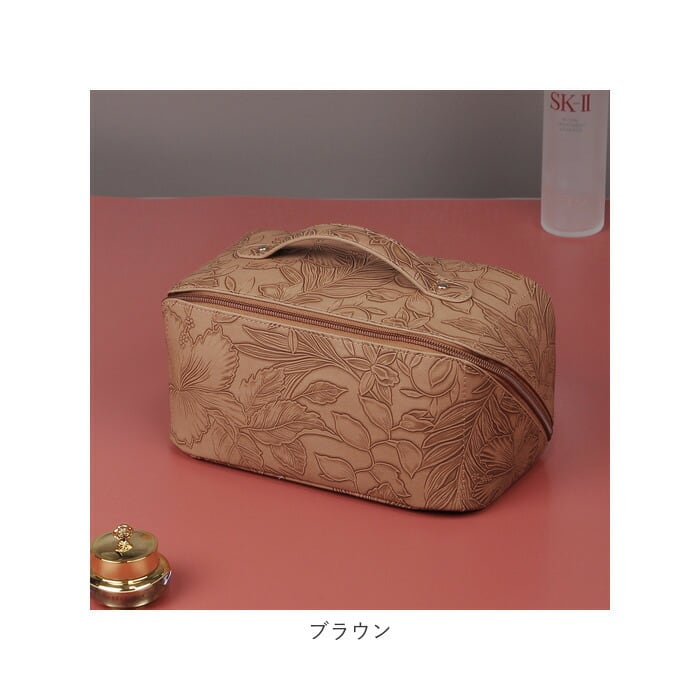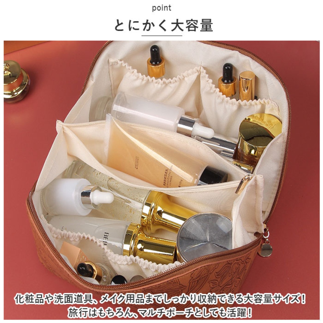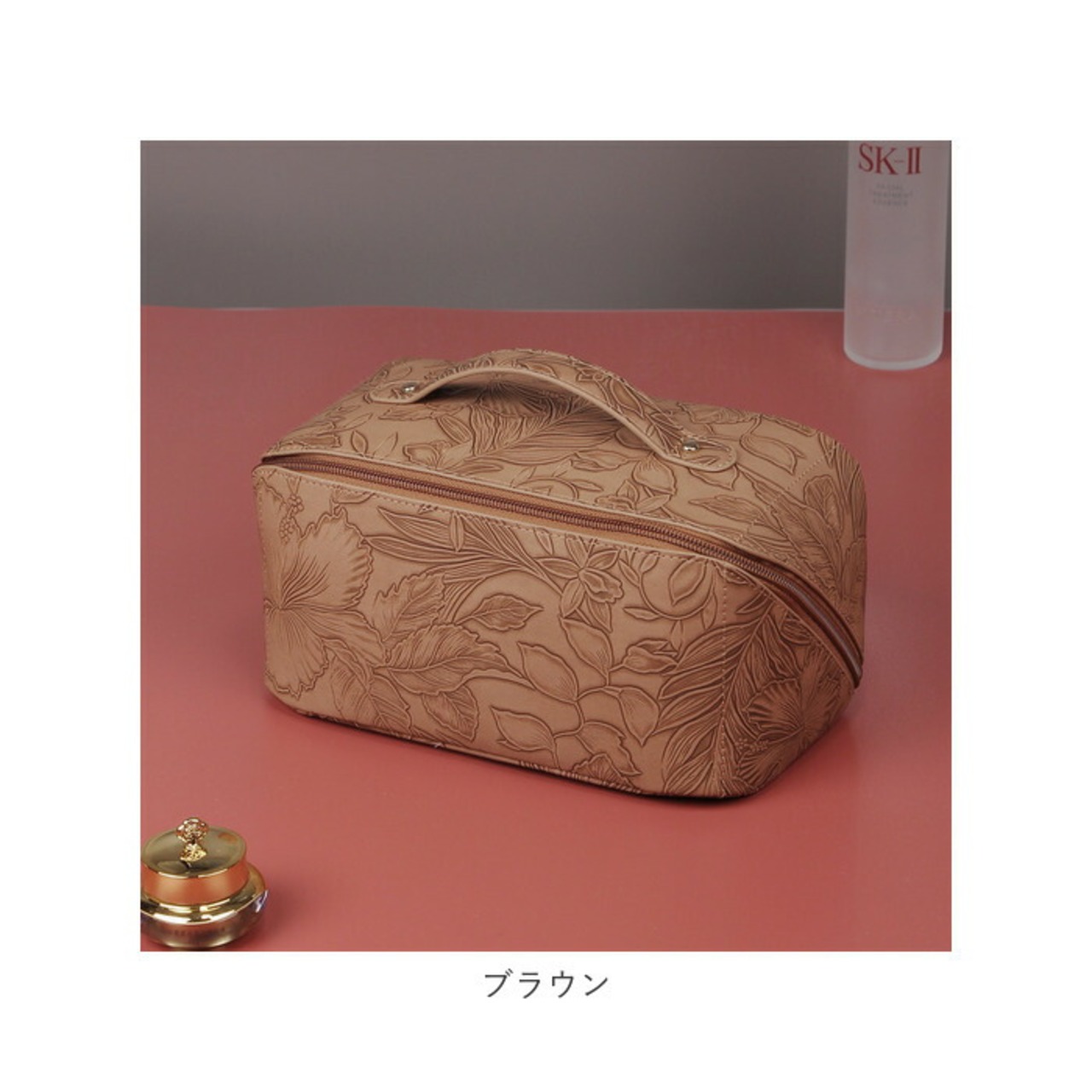 ・たくさん入って使いやすい◎花柄エンボス加工が上品な「化粧ポーチ 大容量」が登場!
