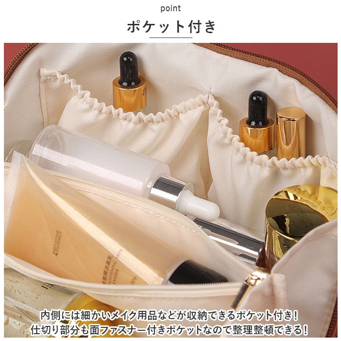 ・内側には細かいメイク用品などが収納できるポケット付き!仕切り部分も面ファスナー付きポケットなので整理整頓できる!