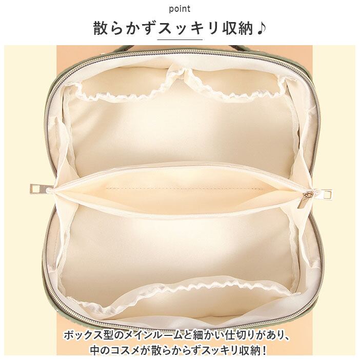 ・ボックス型のメインルームと細かい仕切りがあり、中のコスメが散らからずスッキリ収納!