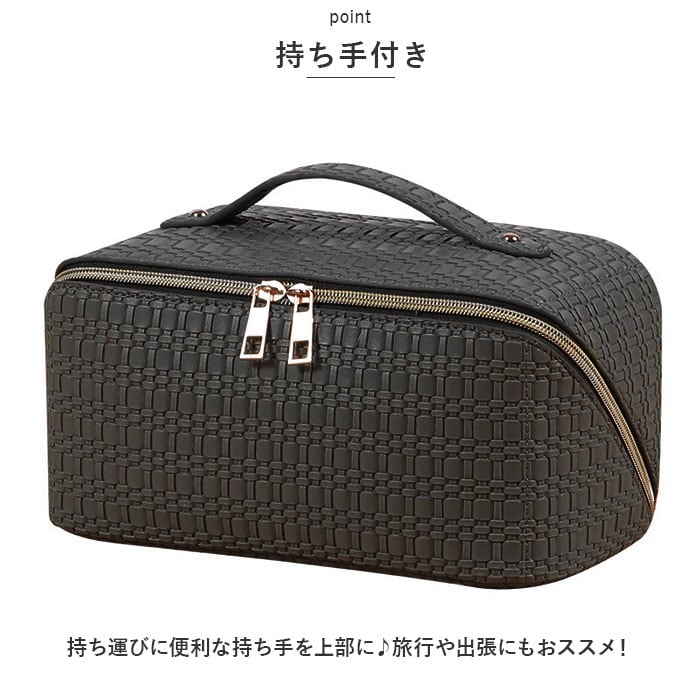 ・内部にはブラシ、リップ、マニュキアなど大きさに合わせて収納出来るポケット付き!定位置に収納すれば必要な時にサッと使える。