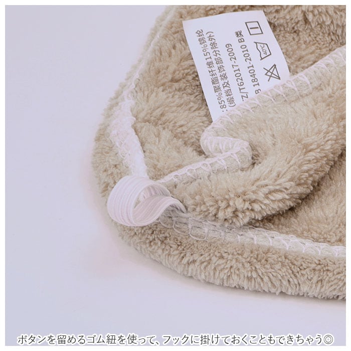 ・ボタンを留めるゴム紐を使って、フックに掛けておくこともできちゃう◎