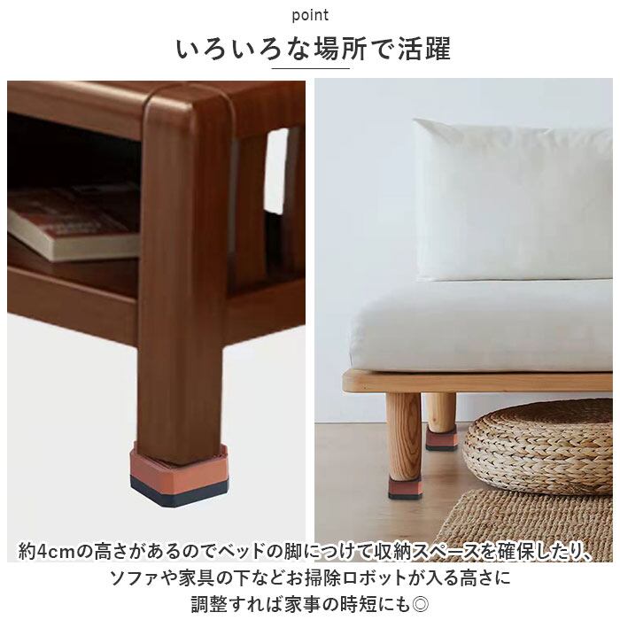 ・約4cmの高さがあるのでベッドの脚につけて収納スペースを確保したり、ソファや家具の下などお掃除ロボットが入る高さに調整すれば家事の時短にも◎