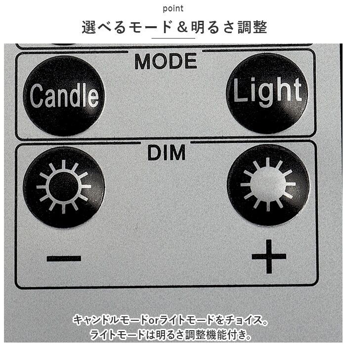 ・キャンドルモードorライトモードをチョイス。ライトモードは明るさ調整機能付き。