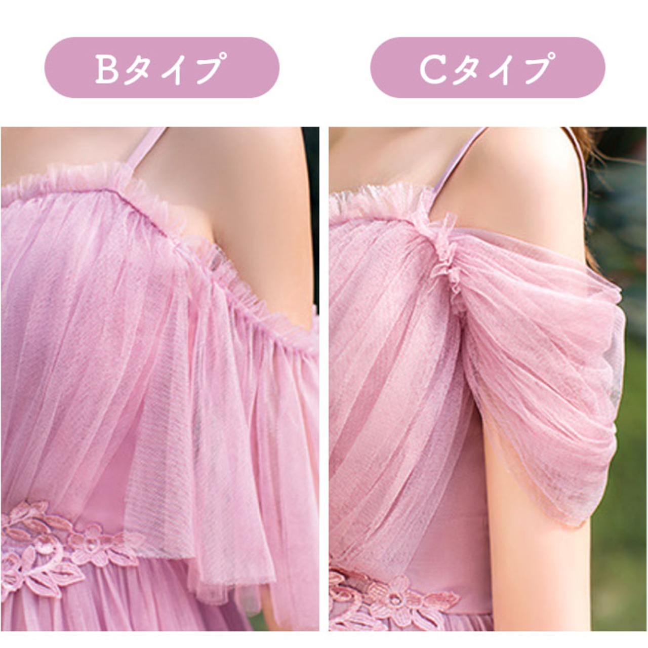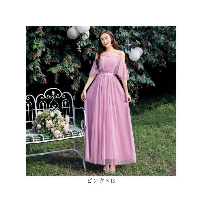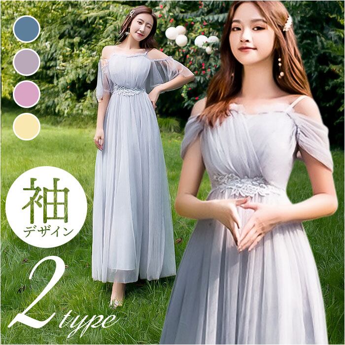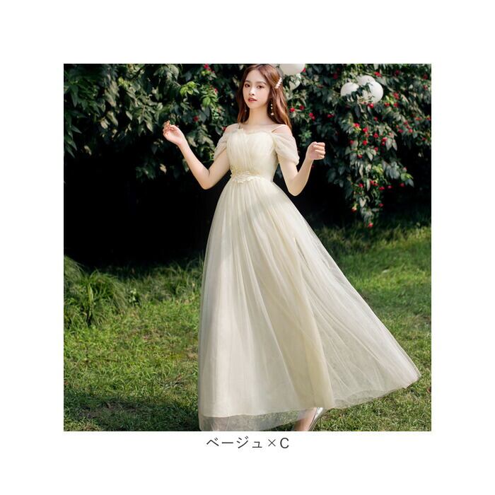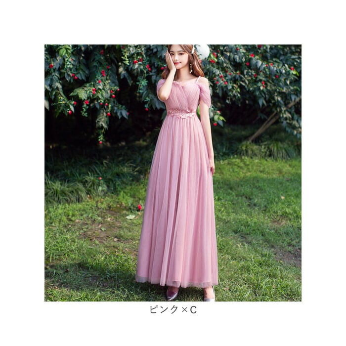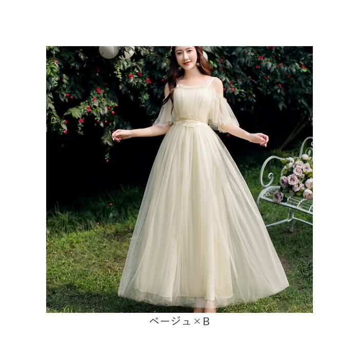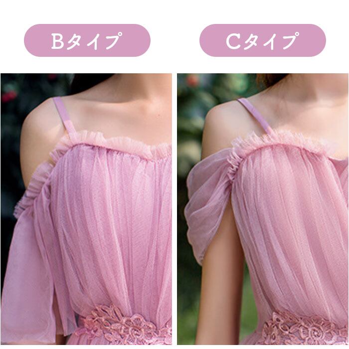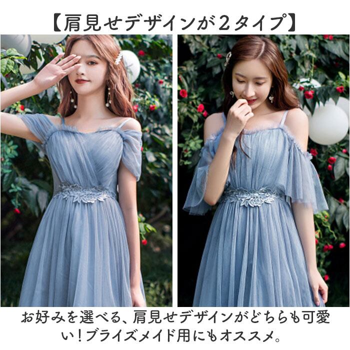 ・お好みを選べる、肩見せデザインがどちらも可愛い!ブライズメイド用にもオススメ。