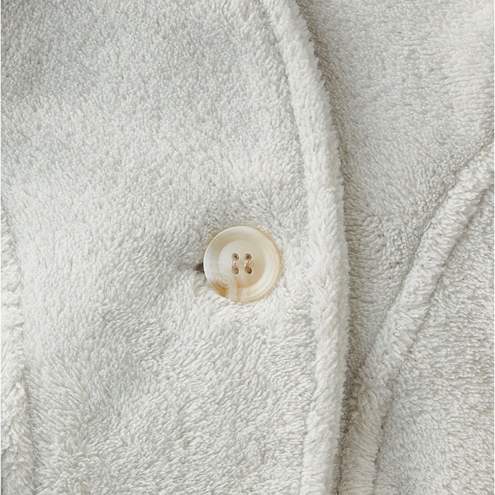 ・襟元ボタンを留めると首まですっぽり。袖や裾は共生地の切り替えで冷気が入りにくい◎