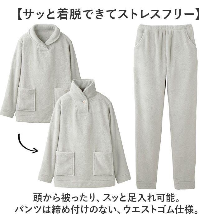 ・頭から被ったり、スッと足入れ可能。パンツは締め付けのない、ウエストゴム仕様。