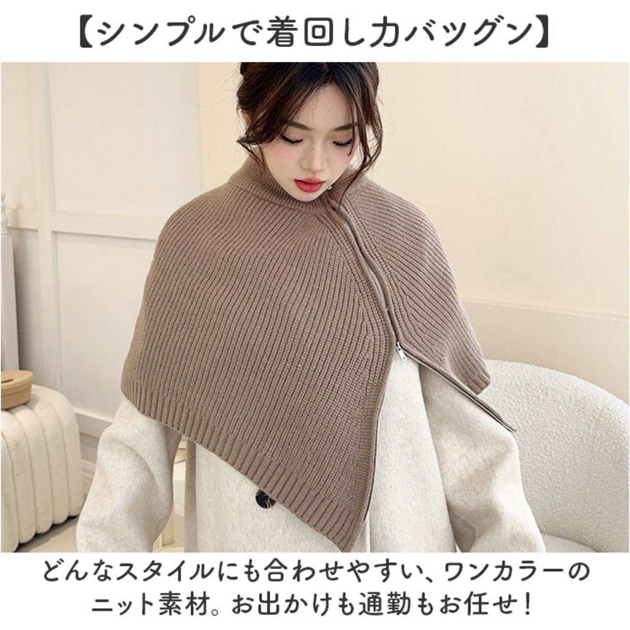 ・アウターなどの上にサッと重ねるだけ。着脱しやすいファスナー式で、頭からすっぽり被れる◎