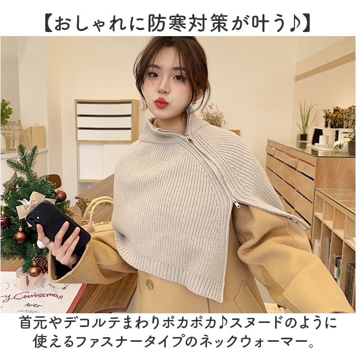ネックウォーマー ニット ファスナータイプ