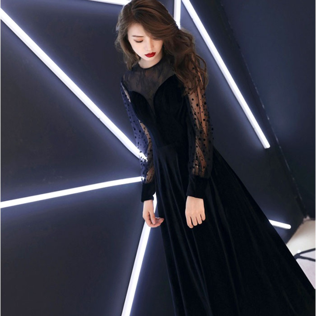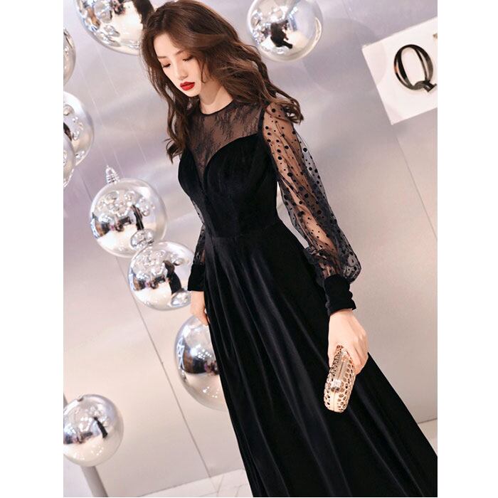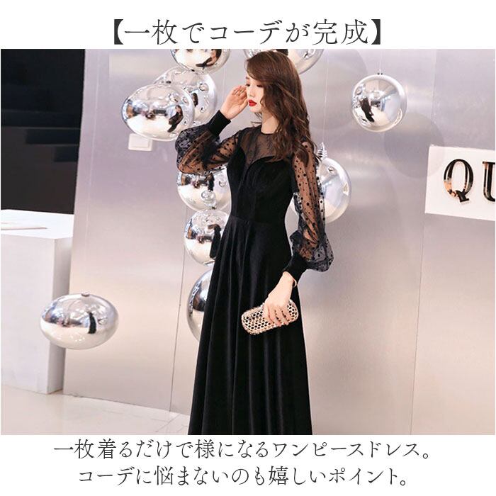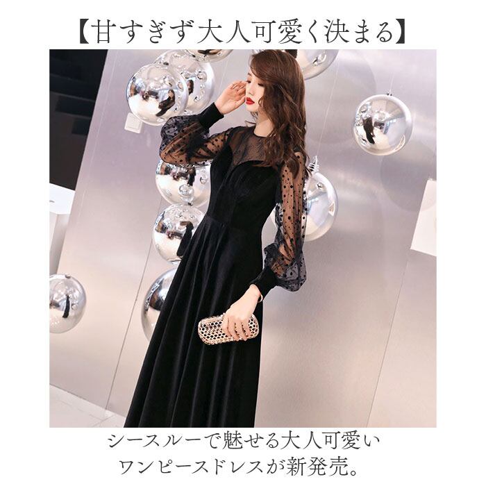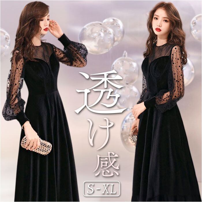 パーティドレス シースルー袖 ロング