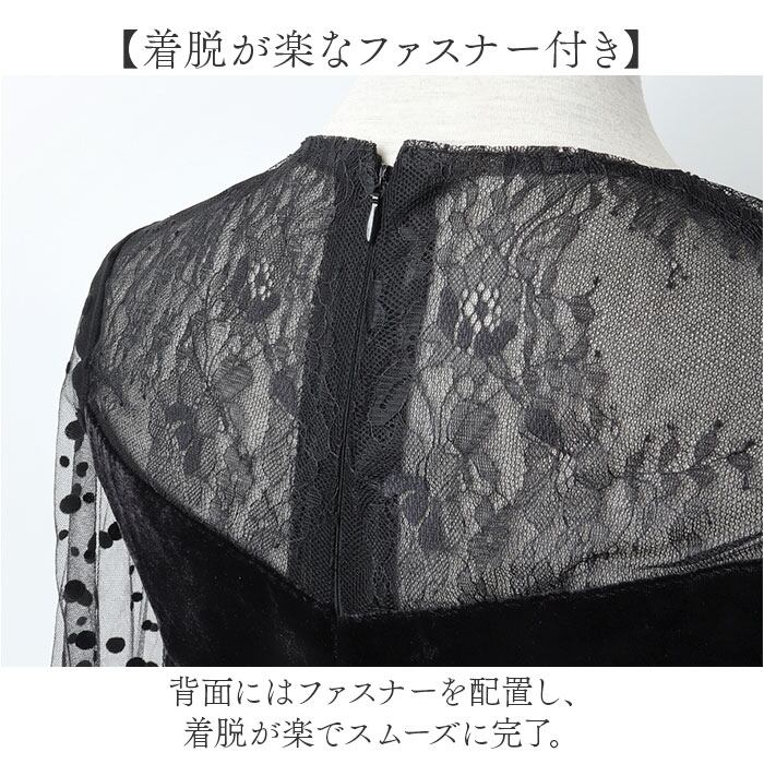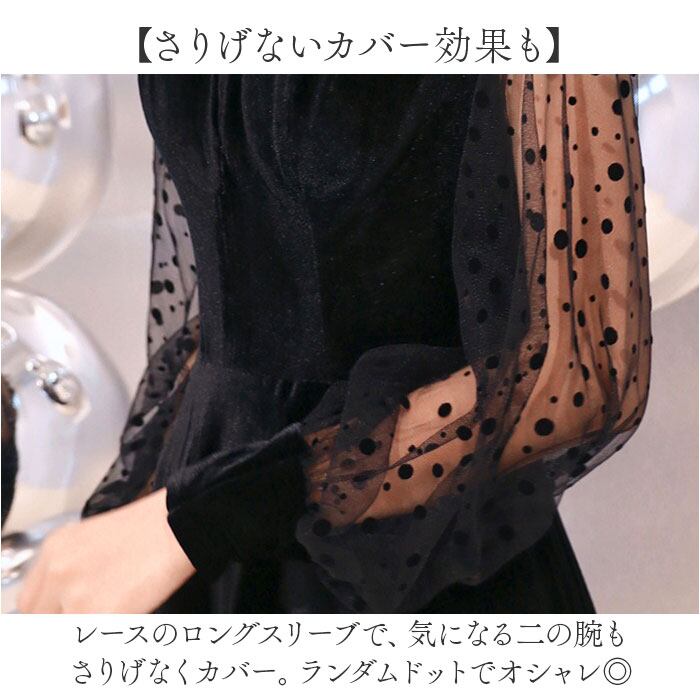 ・レースのロングスリーブで、気になる二の腕もさりげなくカバー。ランダムドットでオシャレ◎