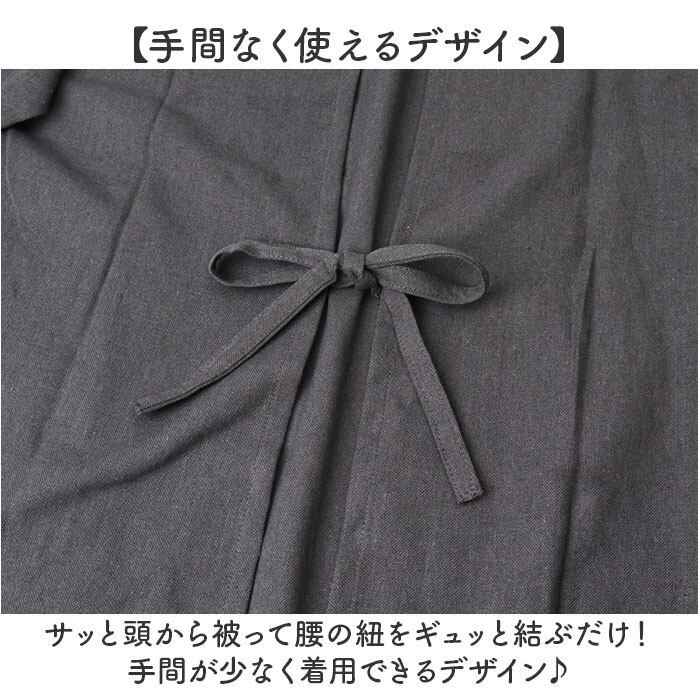 ・サッと頭から被って腰の紐をギュッと結ぶだけ!手間が少なく着用できるデザイン♪