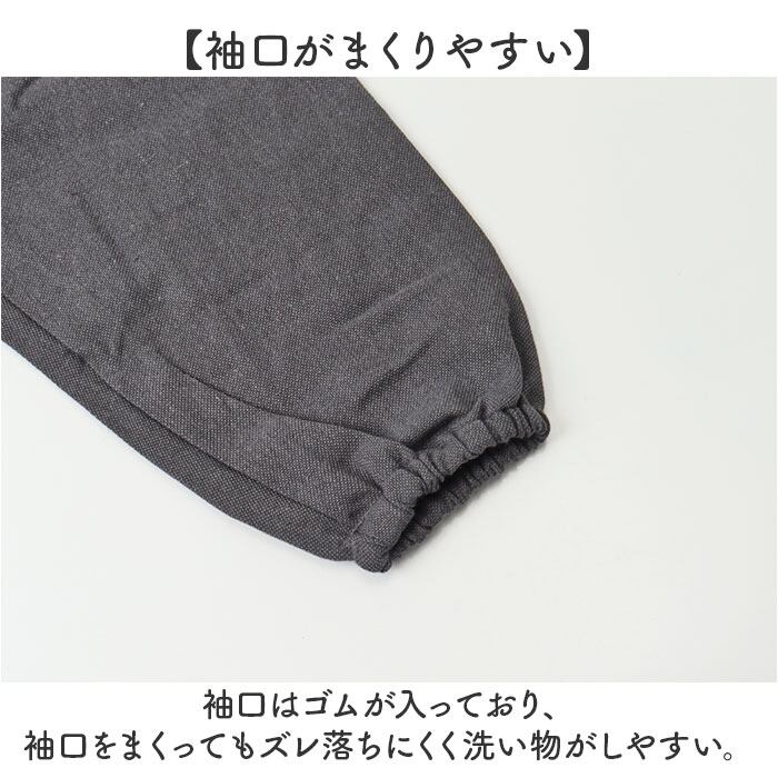 ・袖口はゴムが入っており、袖口をまくってもズレ落ちにくく洗い物がしやすい。