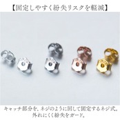 ・キャッチ部分を、ネジのように回して固定するネジ式。外れにくく紛失をガード。