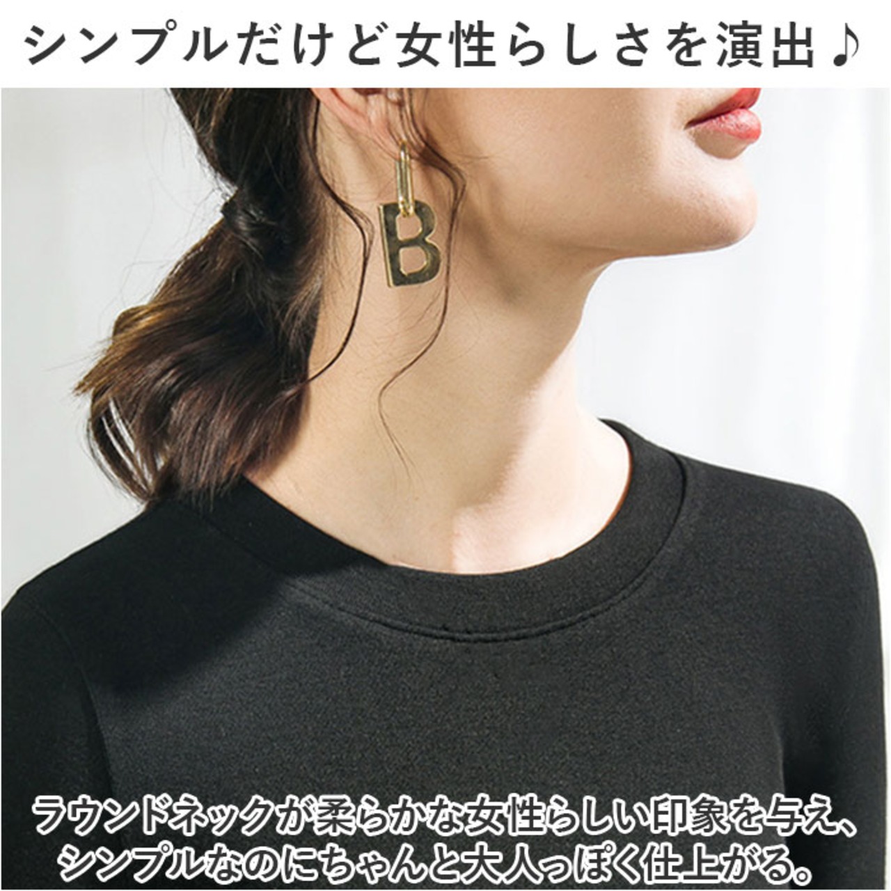 ・ラウンドネックが柔らかな女性らしい印象を与え、シンプルなのにちゃんと大人っぽく仕上がる。