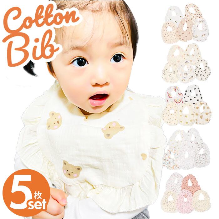 ベビー スタイ よだれ掛け 通販 よだれかけ 前かけ 5枚セット セット 綿 コットン 吸収性 スナップ フリル ナチュラル 保育園 お出かけ かわいい カワイイ お食事エプロン ガーゼスタイ ベビービブ 赤ちゃん 新生児 男の子 女の子