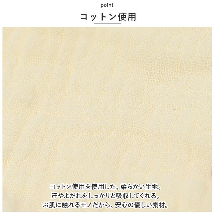 ・コットン使用を使用した、柔らかい生地。汗やよだれをしっかりと吸収してくれる。お肌に触れるモノだから、安心の優しい素材。